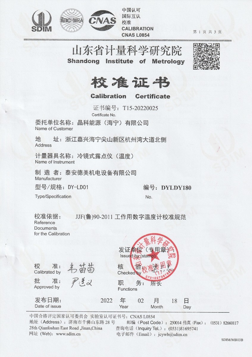 | 上一條:河北京車軌道交通車輛裝備有限公司-冷鏡式露點儀檢定證書 | 下一條:DY-HT2M-C高溫面源黑體爐(100mm) |