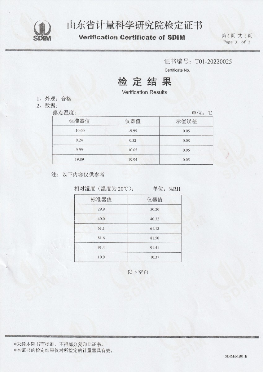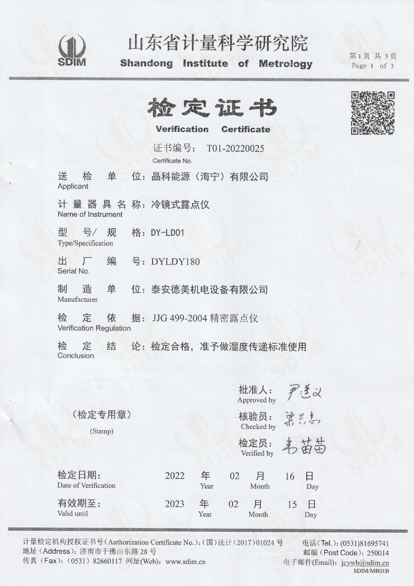 晶科能源(海寧)有限公司-冷鏡式露點儀檢定證書 2022-2-23 本文被閱讀 14403 次