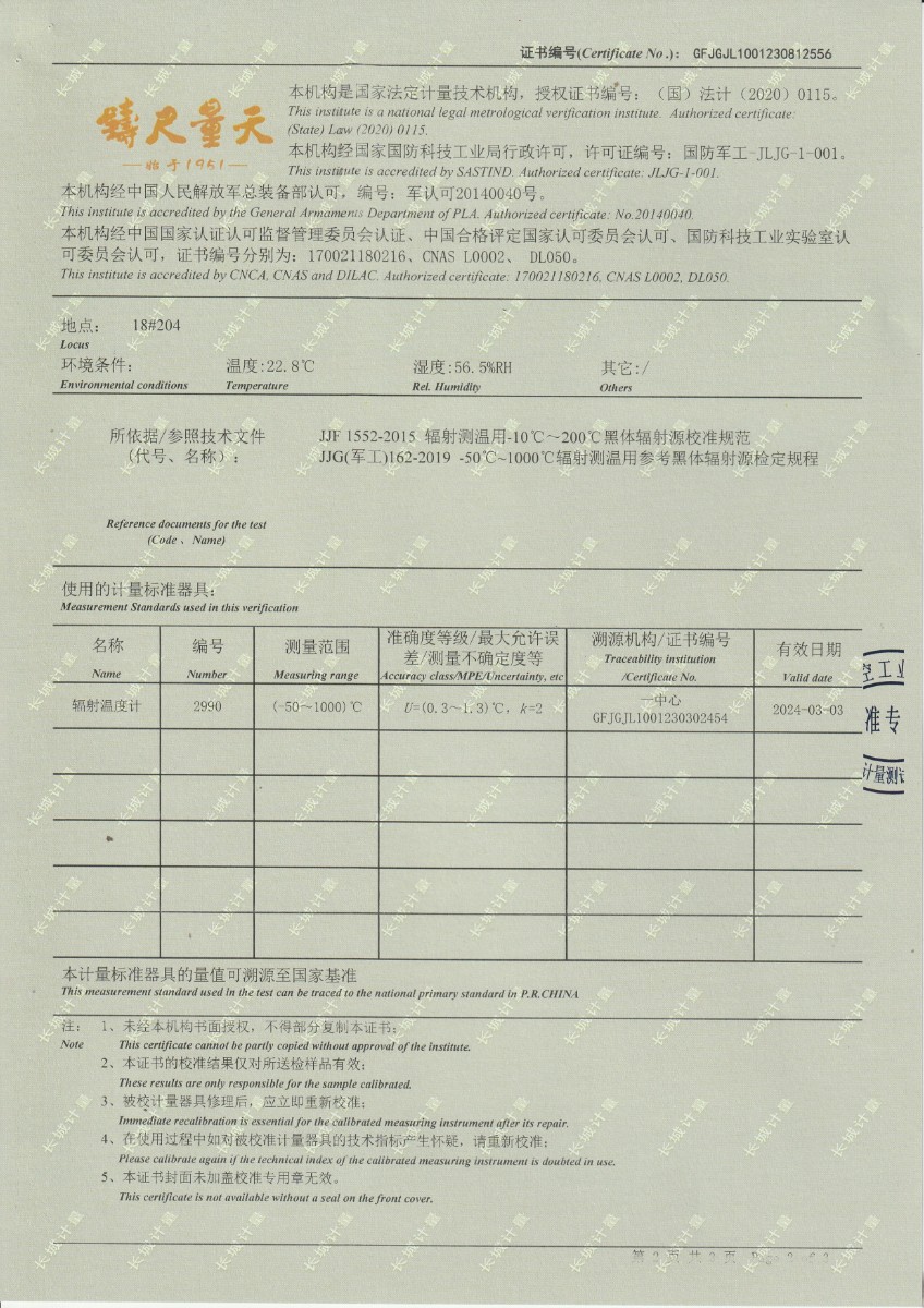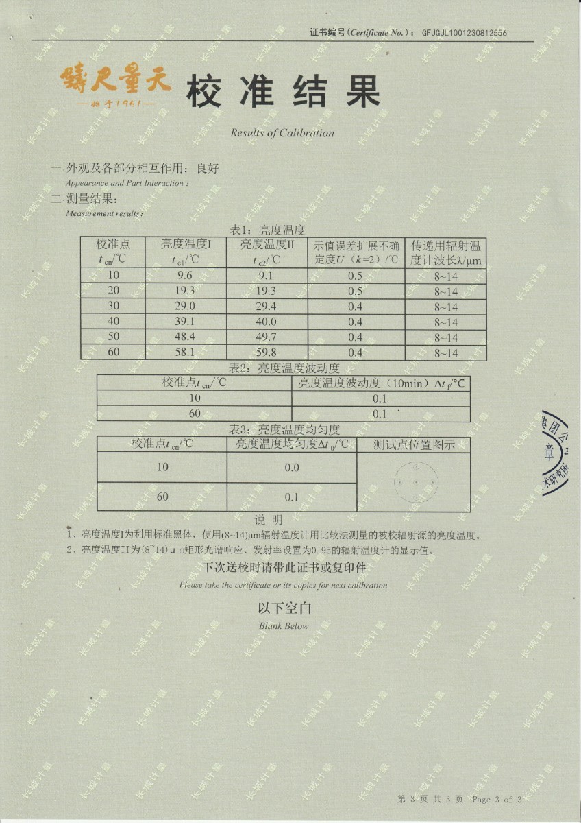 | 上一條:面源黑體爐DYHT1M141校準(zhǔn)證書 | 下一條:DY-HT2M-C高溫面源黑體爐(100mm) |