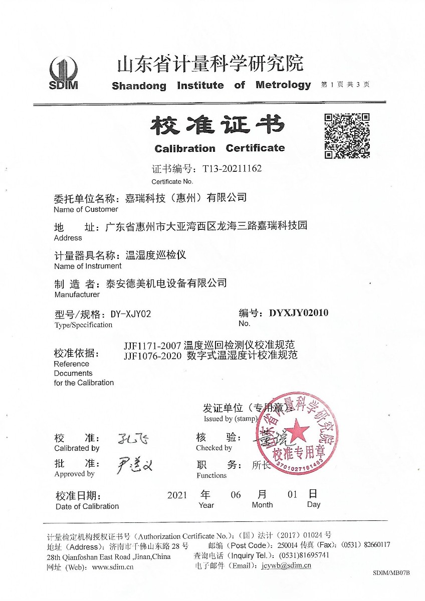 嘉瑞科技(惠州)有限公司-溫濕度巡檢儀 2021-6-17 本文被閱讀 14440 次